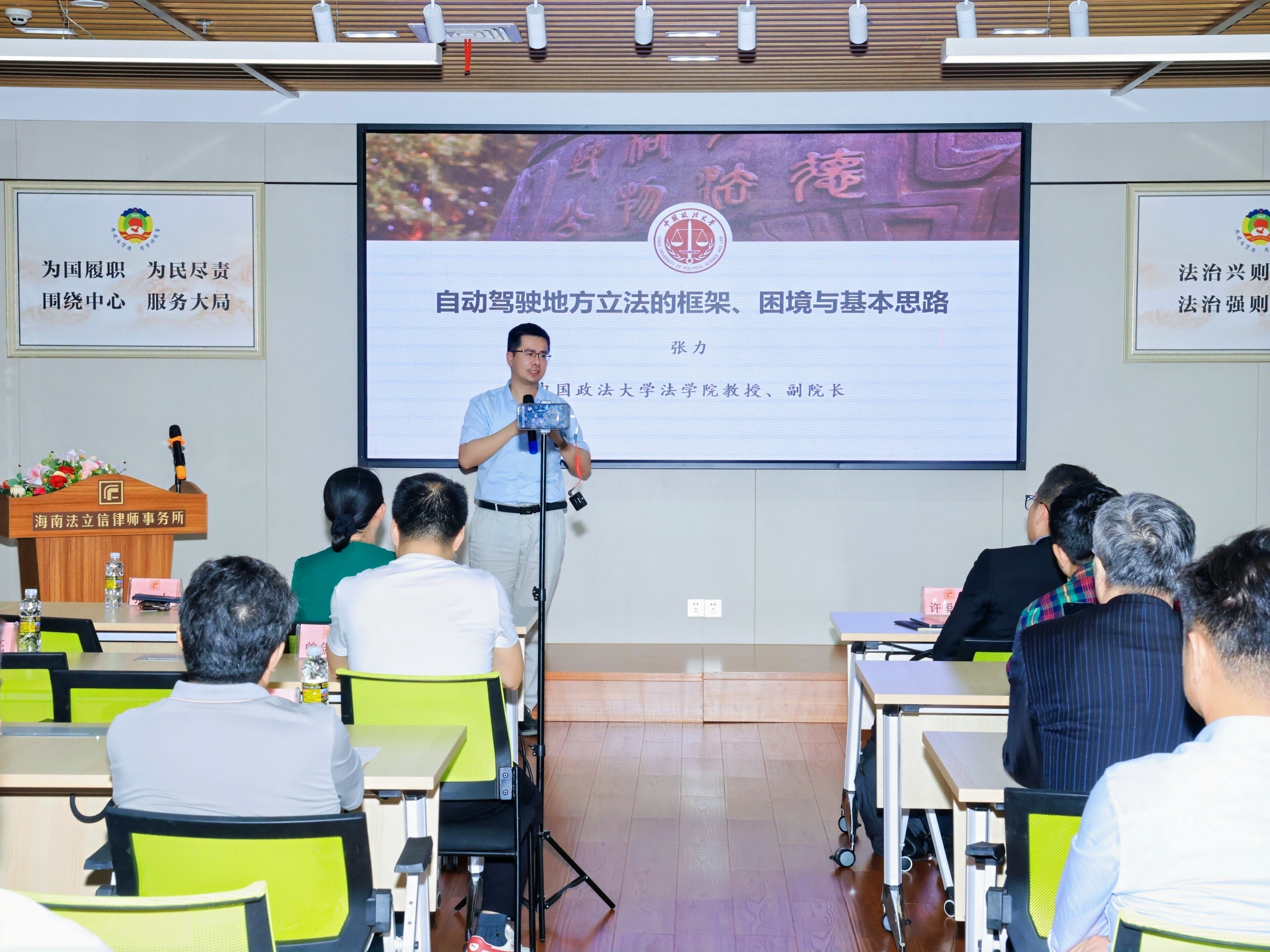 11月7日下午,法大自贸港法治智库系列大讲堂(第1期)在海口市举办。此次讲座由海南自由贸易港法治研究院、海南省律师协会、海南省司法厅“候鸟”法治人才工作站(中国政法大学)主办,海南法立信律师事务所承办,海南省律师协会会长符琼芬、海南法立信律师事务所主任张申立参加活动。本期由中国政法大学法学院副院长张力教授围绕“自动驾驶地方立法的框架、困境与基本思路”进行专题授课。